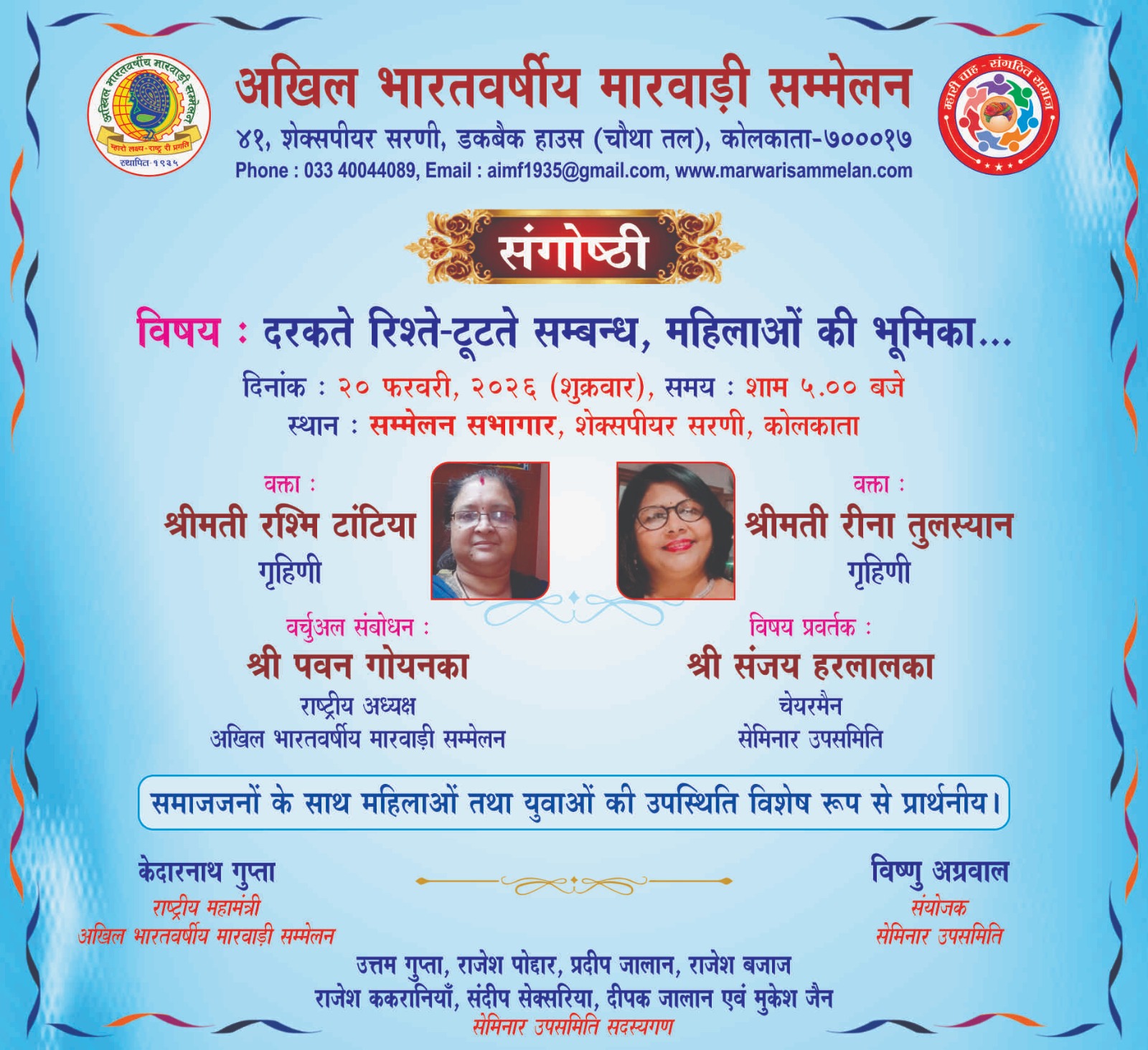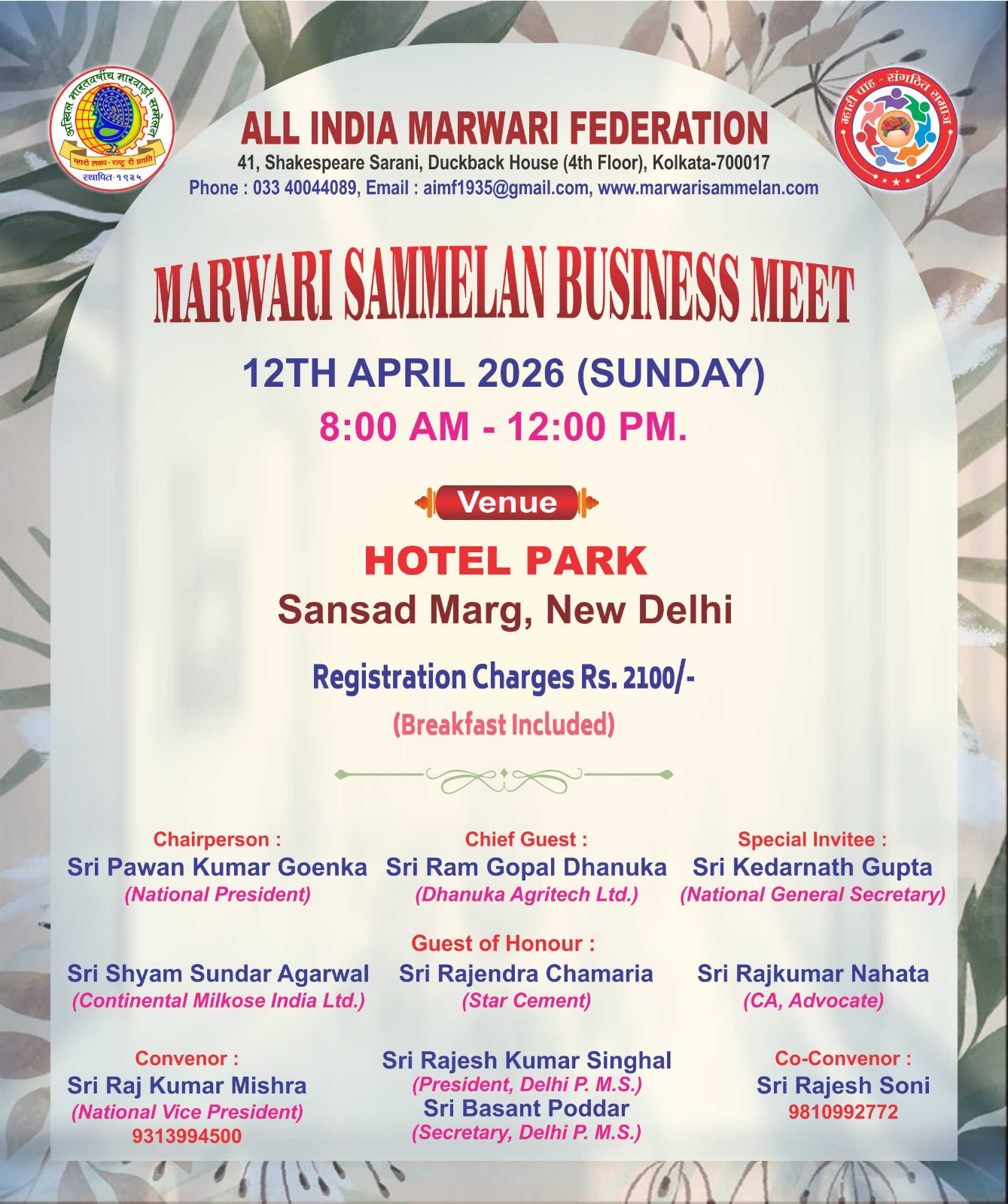 91st Foundation Day ceremony will be held on 25th December 2025 (Thursday) by All India Marwari Federation. Your gracious presence, alongwith family and friends, is solicited.